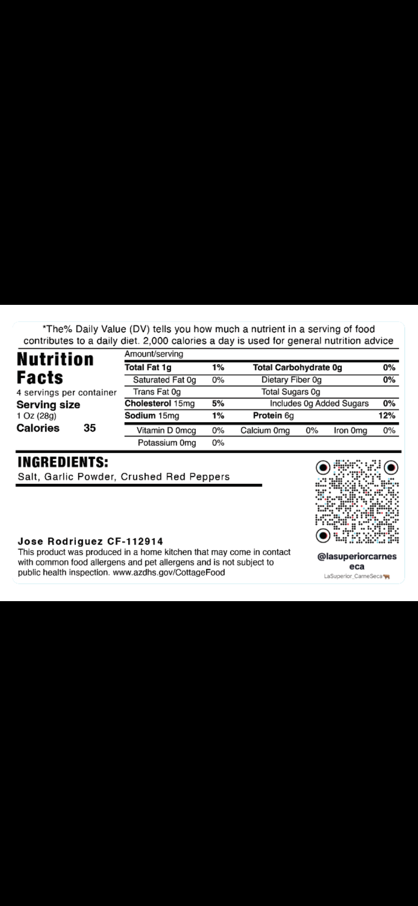 Dive into the La Superior Carne Seca, crafted from 100% pure beef. Each bite delivers a unique taste. The Red packaging sets it apart. Comes with (1)Real Lemon pack and (1)Valentina Salsa pack. Ideal for those craving a tasty, nutritious snack. Comes with 4 servings per bag. Don't miss out—buy now!